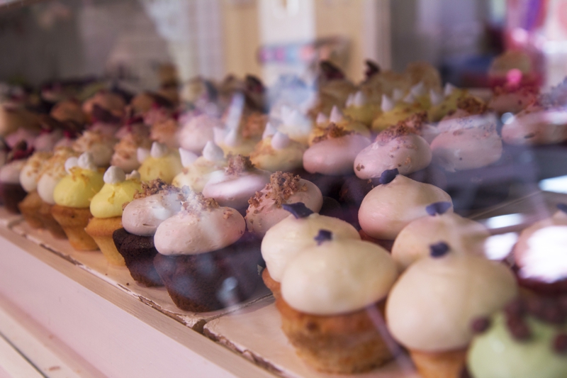 例えばアメリカの典型的なカップケーキ「レッド・ベルベット」のレシピは真っ赤な食紅をたっぷり使ったもの。だけどカップケーキストックホルムが造りだす「レッド・ベルベット」はビーツからの自然な色味を使用しています。またシェフの経験をいかして、ブイヤベースにインスピレーションを得たサフランとトマトを使用した少し珍しい組み合わせのカップケーキや、リンゴンベリーやブルーベリー、リコリッシュなどを中心にスウェーデンの素材をふんだんに使用したカップケーキなど他では味わえない二人のオリジナルなカップケーキが、毎日ショーケースに16種類も並びます。今までに作ったカップケーキのバリエーションはすでに約300種類にものぼるそう。