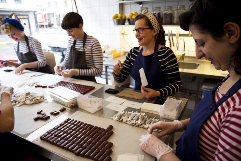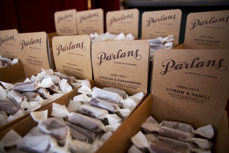 ストックホルム市内の南に位置するセーデルマルム(Södermalm)、その中でもソーフォー(SOFO)と呼ばれる地域は、若手クリエーターや流行のショップが集まる注目スポット。そのSOFOに2011年11月オープンしたのが「真珠製菓店」を意味する手作りキャラメルのショップ兼カフェ、パーランス・コンフェクティール・ストックホルム(Pärlans Konfektyr Stockholm)です。