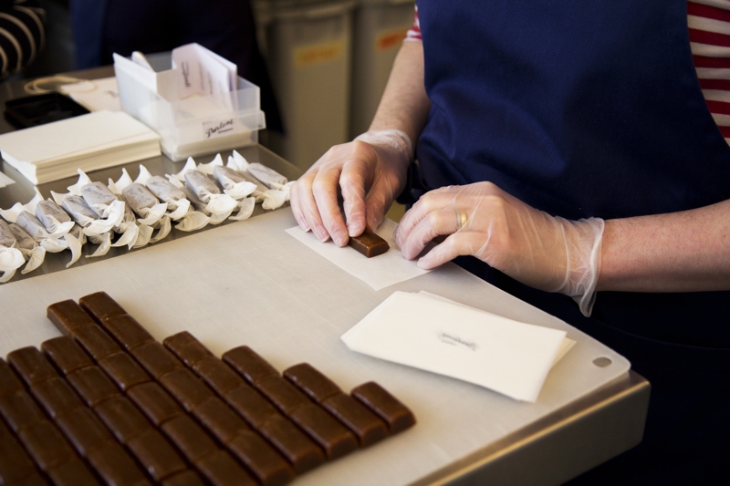 通りに面するキッチンはガラス張りになっており、そこからお店の雰囲気ぴったりの30年代ファッションに身を包んだ女の子たちが、楽しそうにキャラメルを作る様子を眺めることができます。